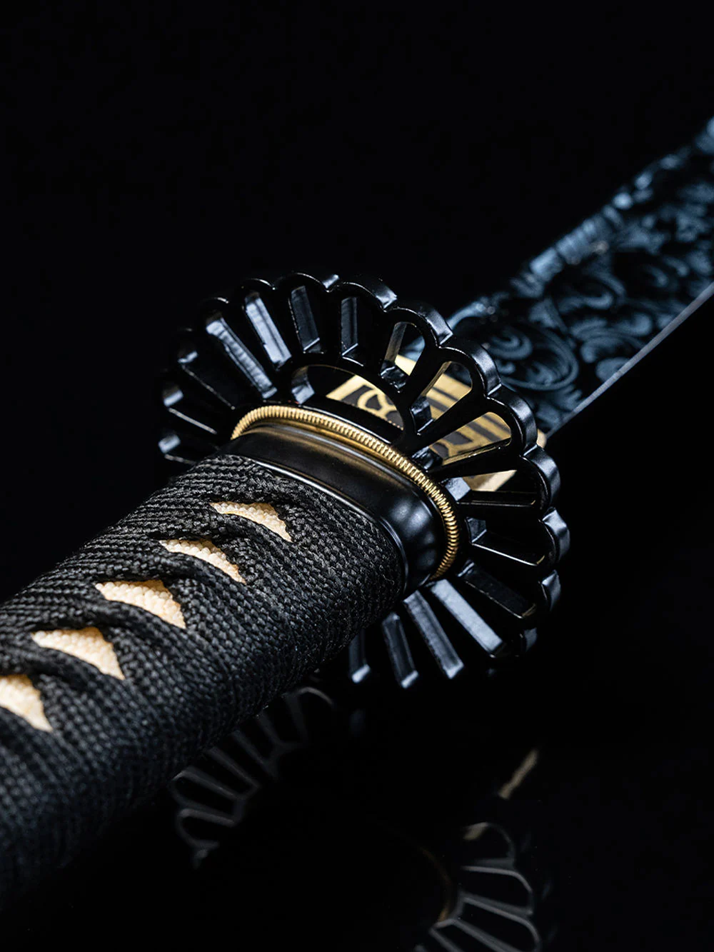 Iron Tsuba - The iron hand tsuba, provides added hand guard to the katana and ensures its durability and dependability for both aesthetic purposes and cutting applications.
