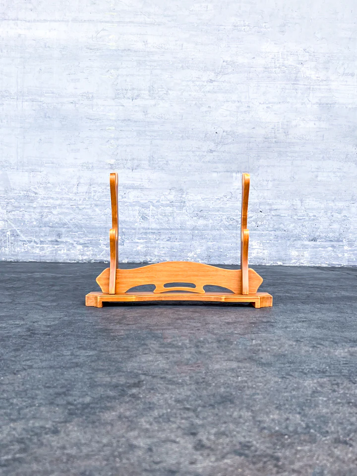 Showcase two of your favorite blades with this platform-style, double-tier sword stand. Made of light wood, it offers a modern look and stable support, ideal for collectors who appreciate both style and structure.