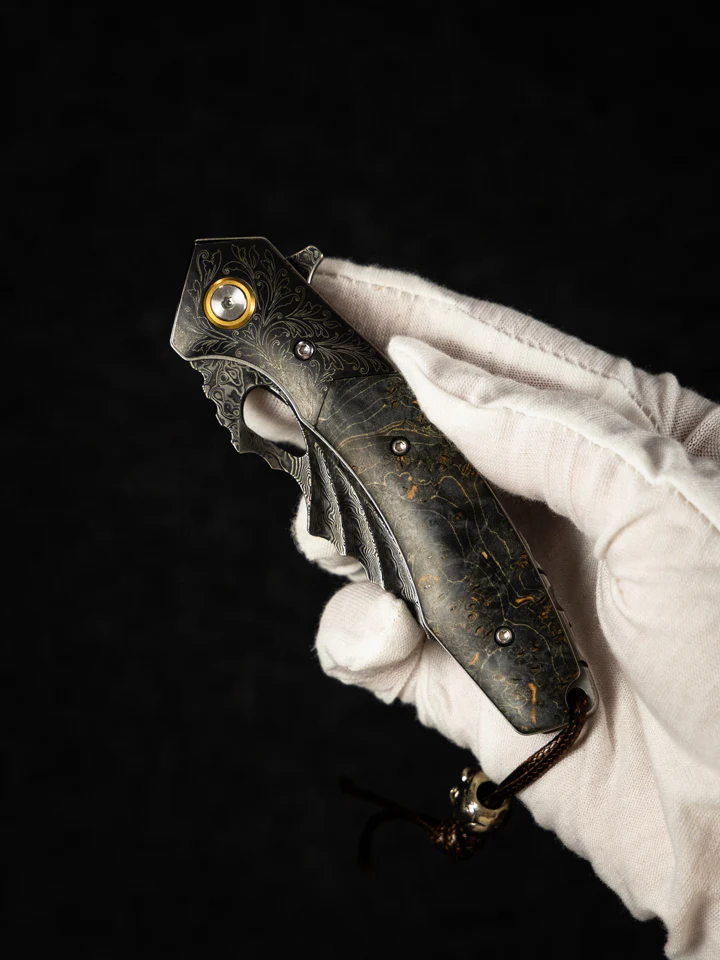 Introducing the Silverwing Damascus Pocket Knife! Inspired by the majestic wings of a dragon, its blade is meticulously crafted from stunning 2.75-inch Damascus steel, featuring intricate patterns that evoke a sense of awe.