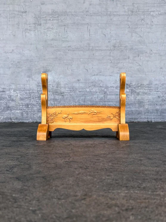Featuring an elegant stork motif carved into light wood, this two-tier stand adds a decorative touch to your display while securely holding your swords. A striking blend of both style and function.